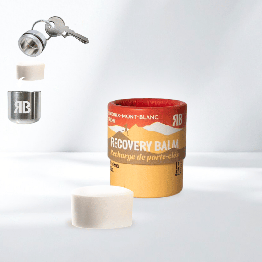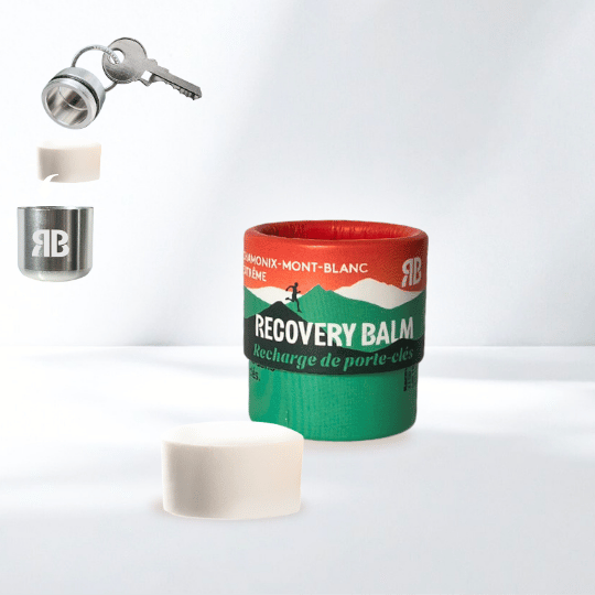 Recharges écologiques pour le porte-clés Recovery Balm. Fabriqué avec des ingrédients 100 % naturels et des emballages sans déchets.